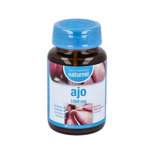 Ajo 1.000 mg de Naturmil es un complemento alimenticio con acción vasodilatadora, antimicrobiana y desintoxicante general del organismo.