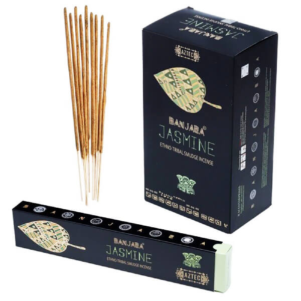El incienso de Jazmín de Banjara se elabora con ingredientes naturales que se han recolectado de forma sostenible. Las flores de jazmín se secan y luego se trituran. La mezcla se moldea en varillas, que se dejan secar al aire.